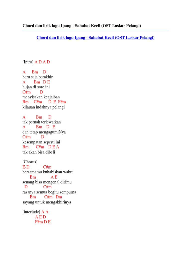 Chord Dan Lirik Lagu Ipang Sahabat Kecil Ost Laskar Pelangi By Chord Zila Issuu