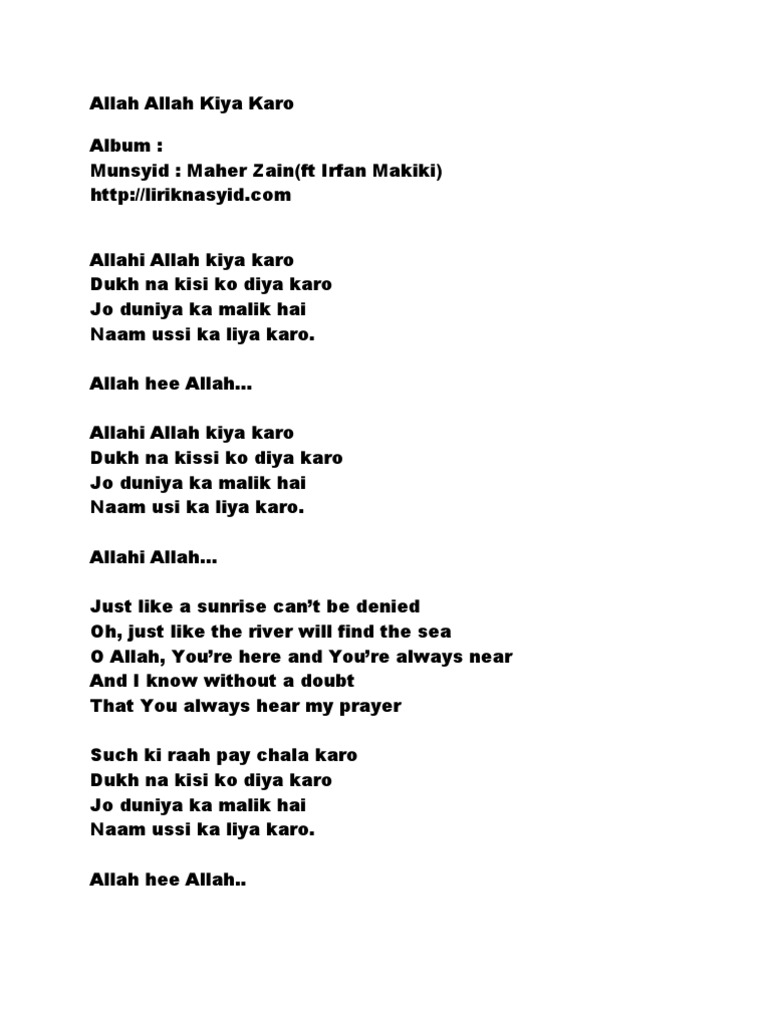 Allahi Allah Kiya Karo Karaoke Mp3 Song Download Thank You Allah Karaoke Version Allahi Allah Kiya Karo Karaoke German Song By Maher Zain On Gaana Com