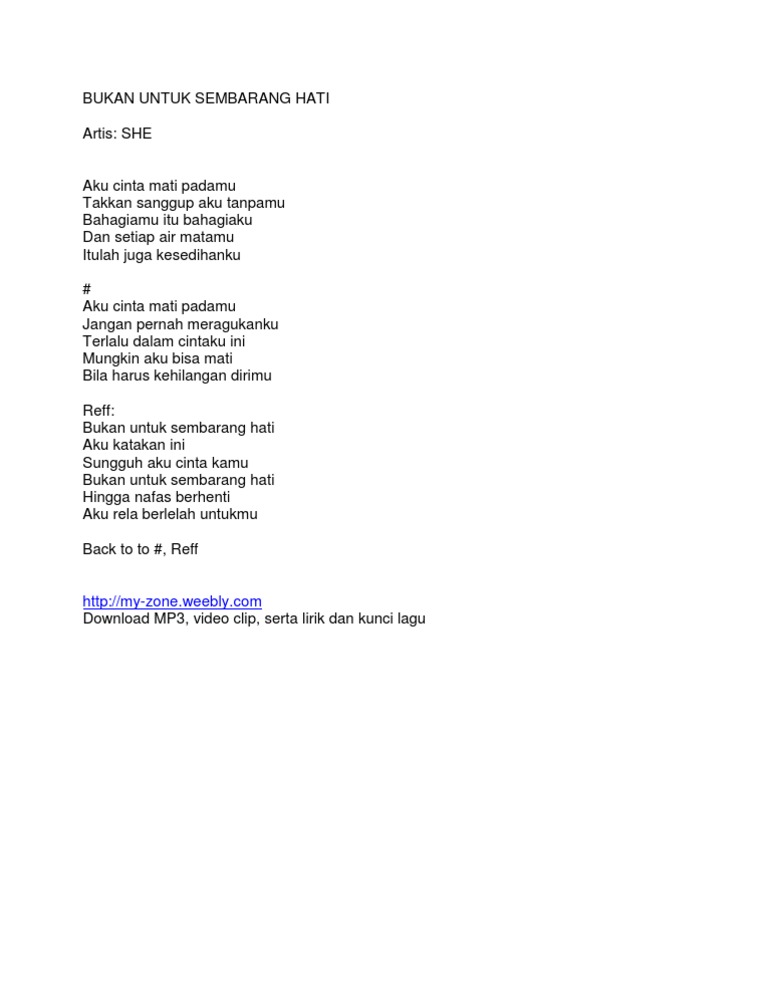 Download Lagu Bukan Untuk Sembarang Hati Oleh She Mp3 Stafaband