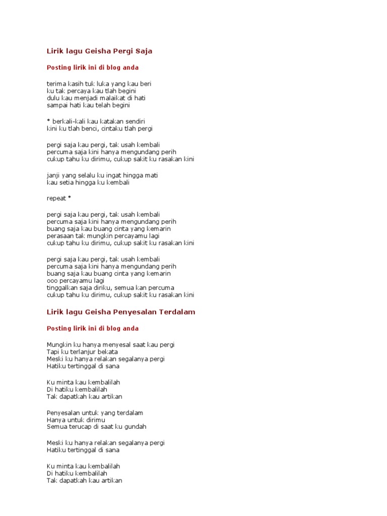 Download Pdf Chord Dan Lirik Lagu Geisha Pergi Saja Ylyx95mveenm