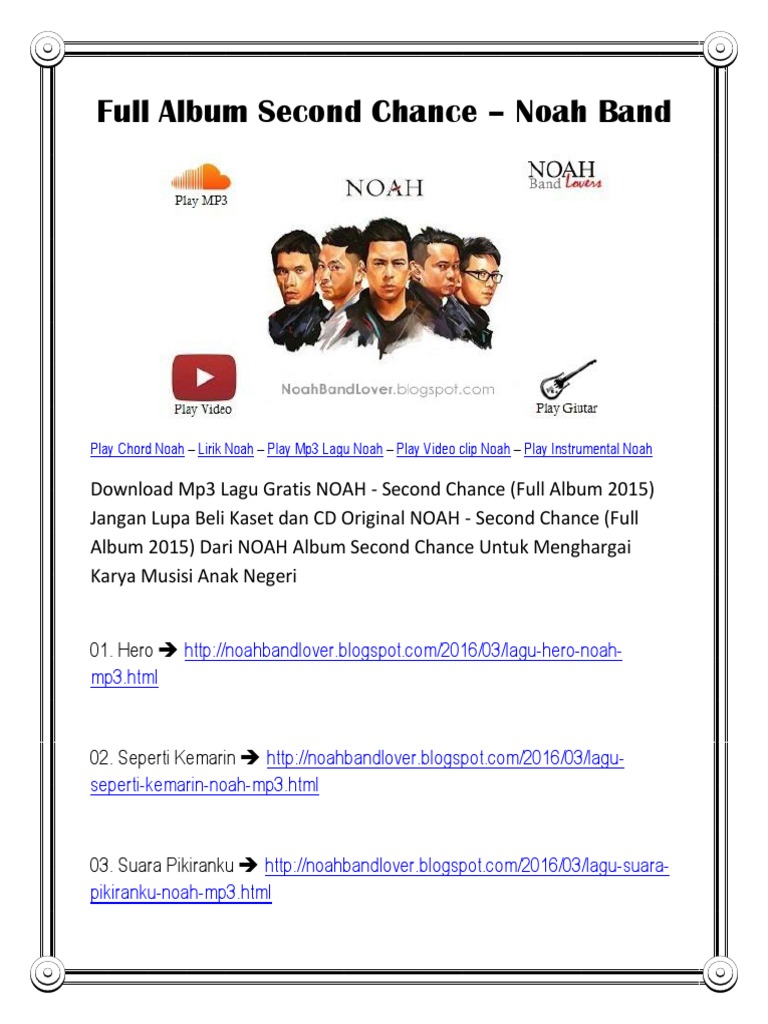 Full Album Second Chance Noah Mp3 Entertainment General