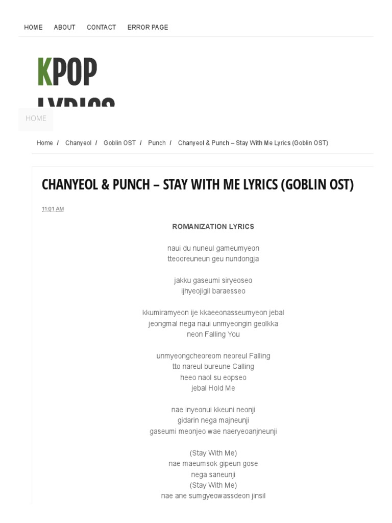 Pop Lyrics Chanyeol Punch Stay With Me Lyrics Goblin Ost